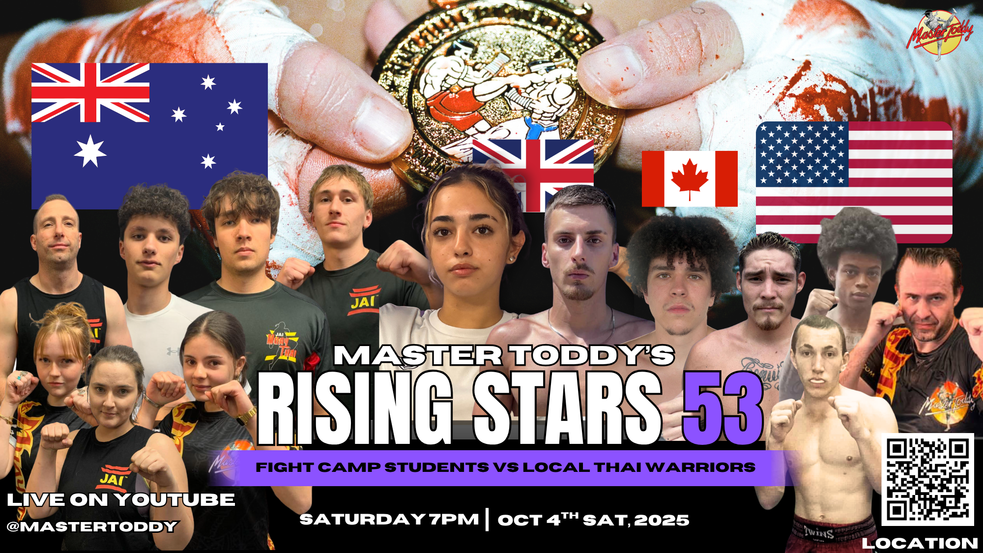 Rising Stars began as one of Master Toddy’s early development programs during his years in America, created to give new fighters their first real platform to compete. Over time, as Master Toddy’s reputation grew and his fighters became champions across the world, Rising Stars evolved into a globally recognised pathway for beginners to enter Muay Thai. Many well-known fighters had their first fight under this system, making Rising Stars not just an event, but a launchpad where countless careers first began.