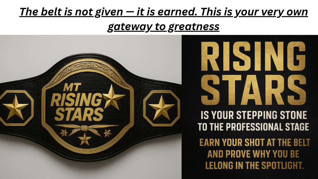 “I built Rising Stars so every beginner and amateur fighter has a real chance to rise. I wanted a platform where you could step into the ring safely, face an opponent matched to your level, and learn the real spirit of Muay Thai. This is more than just a fight — it’s a place to grow, to test your courage, and to discover your true potential. Every champion starts as a beginner, and here is where your journey begins. Step in, train hard, fight with heart, and show the world what you’re truly made of.”